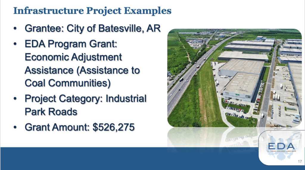 Last year, through the Assistance to Coal Communities (ACC) Initiative, the U.S. Economic Development Administration (EDA) awarded $2.1 million to the city of Batesville, AR to make critical infrastructure improvements at the city’s industrial park.