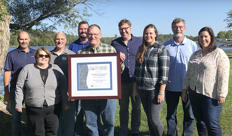 Since 1992, the Office of Surface Mining Reclamation and Enforcement (OSMRE) each year presents the Abandoned Mine Land (AML) Reclamation Awards to multiple AML projects across the nation. In 2021, the national award winner was the DeRonde Site in Southeast Iowa. This 70-acre former mine land was filled with industrial waste and debris that polluted and clogged streams, making it unhealthy for people and wildlife. Using an OSMRE grant, the Iowa Department of Agriculture and Land Stewardship got to work clearing waste and polluted water, installing water intakes and seeding the soil to grow anew.